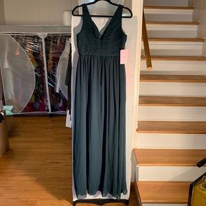 NWT Anthropologie bhldn Angie Chiffon Maxi Dress in Dark Green