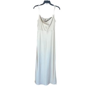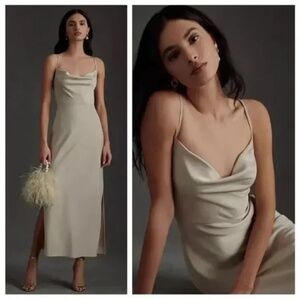 BHLDN Anthropologie Cali Satin Cowl Neck Midi Slip Dress In Oyster Beige Size 4