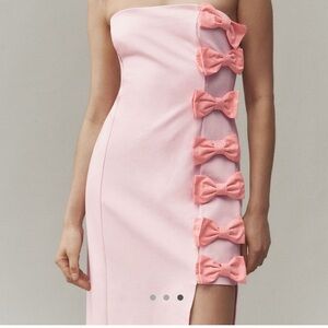 BHLDN Anthropologie Chic strapless dress in soft pink. Features playful bow details on the side. Perfect for elegant occasions. Never worn. Brand new. Smoke free home. MAKE ME AN OFFER!