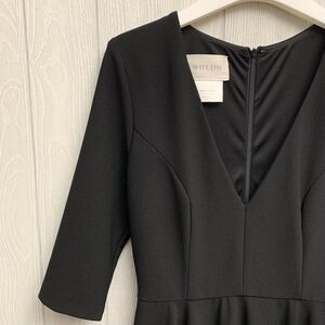 BHLDN Anthropologie Valdis BlackV-Neck 3/4 Sleeves Tea Length Dress 4 NWT