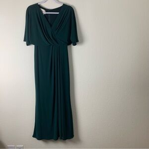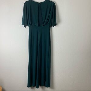 BHLDN Anthropologie Womens green short sleeve v neck back zip side slit maxi dress