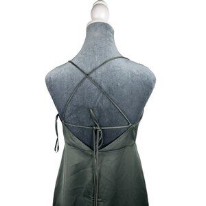 BHLDN Antropologie Women Remy Cowl-Neck Faux-Wrap Satin Gown Green Dress Maxi 4