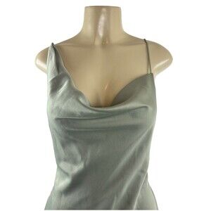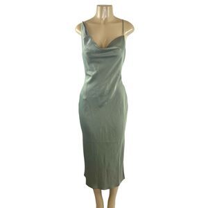 BHLDN August Satin Charmeuse Midi Dress Size 6 Moss Green Draped Neck Side Slit