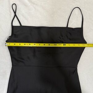 This sophisticated black sheath dress by BHLDN features a chic square neckline and a stylish slit, perfect for cocktail parties or a night out. The sleeveless design and midi length offer a modern, elegant silhouette that flatters any figure.