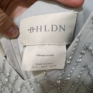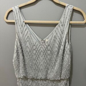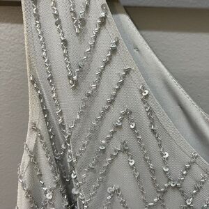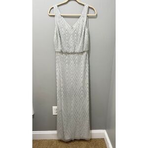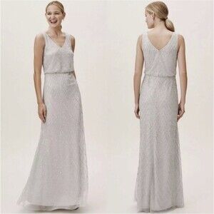 BHLDN Blaise Chevron Pattern Beaded Maxi Dress Light Gray Size 4 Sleeveless Gown