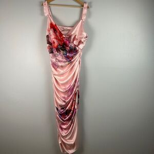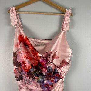 BHLDN Callie Sleeveless Ruched Floral Charmeuse Midi Dress