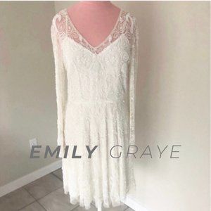 Elegant lace dress with long sleeves. Perfect for weddings. Features intricate lace patterns.