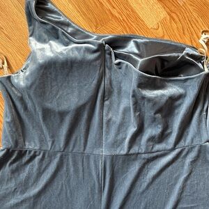 Photo of the dress in green and red to show plus size on a model as I couldn’t locate a picture in the blue