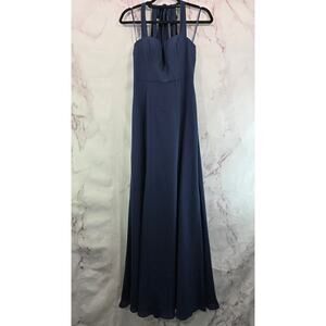BHLDN Dress Womens 4 Small Navy Blue Clara Maxi Tie Georgette Smocked