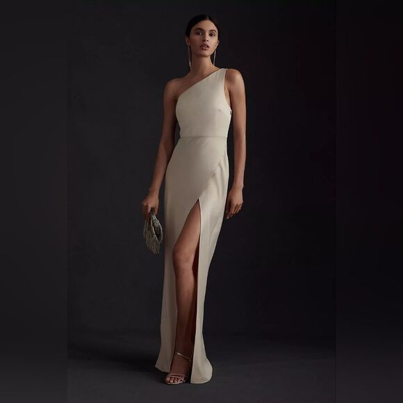 BHLDN Dylan One Shoulder Satin Side Slit Gown Sz S