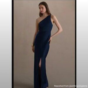 BHLDN Dylan One-Shoulder Satin Side-Slit Gown