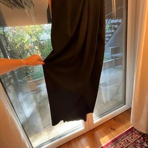 Chic black strapless dress by BHLDN. Sleek and sophisticated design. Perfect for elegant occasions - formal, semi formal, cocktail. Purchased originally as a bridesmaid for a wedding that was cancelled due to COVID. It has a split tulip hem, which is a bit longer in the back (ankle) and shorter in the front (mid-shin).