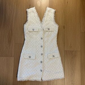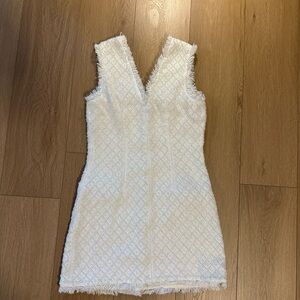 BHLDN Ella V-Neck Pearl Tweed Mini Dress. Perfect for any wedding/engagement events. Intricately beaded, heavy and good quality dress. Size S.