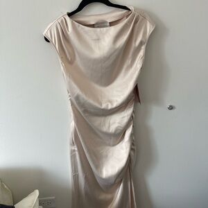 BHLDN Francesca High-Neck Stretch Satin Midi Dress