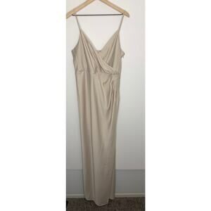BHLDN Freya Satin Charmeuse Dress in Oyster Neutral Nude Womens US14 New