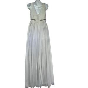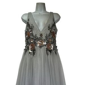 BHLDN Gray Tulle Beaded Floral Maxi Gown Size 4 Formal Evening Dress