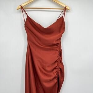 BHLDN Jennings Cowl Neck Ruched Side-Slit Satin Gown in Copper Women's 0