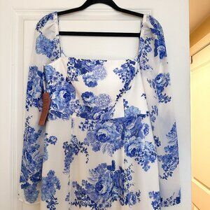 Color: White and Blue Floral Print
