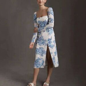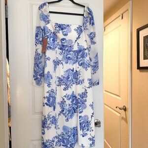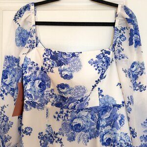 BHLDN Kayleigh Georgette Dress Blue Floral