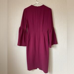 Designer Jill by Jill Stuart bell sleeve front slit cocktail dress in a red wine burgundy shade. Also known as BHLDN “lilah” dress. Excellent pre-owned condition *only flaw is slight imperfection along waistline (see last photo, not super noticeable when worn)*