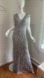 Lotus Threads New York - Stunning Dove gray floor length gown with silver sequin throughout. Called The Ribbon Gown, amazing ribbon like detail from shoulder to toe. Please examine the photos and video for the amazing quality of this gown. There is a tiny rip in the mesh only, next to the zipper in the back that can be easily mended by your seamstress.
