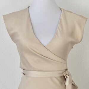 BHLDN Louisa Satin Charmeuse Champagne Cream Midi Dress - 0