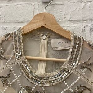 BHLDN || Mariposa Beaded Sequin Mesh Dress Bride Wedding Reception Ivory 6