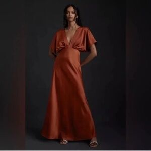 BHLDN NWT Leila Satin Charmeuse Maxi Dress Dark Rust 0