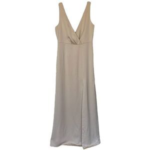 BHLDN Piper Champagne V-Neck Side Slit Satin Maxi Formal Gown NWT Size 8/Medium