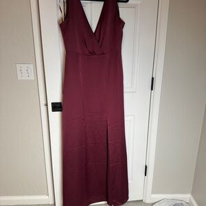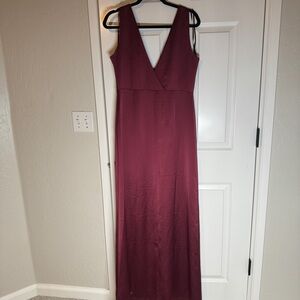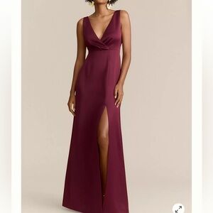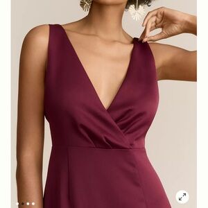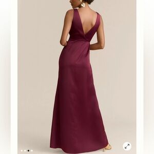 BHLDN Piper V-Neck Side-Slit Satin Gown- dark red with tags 12