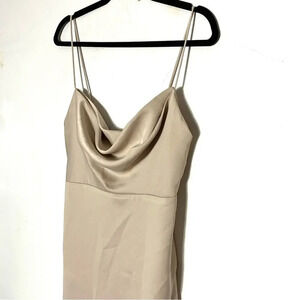 BHLDN Remy Cowl Neck Faux-Wrap Satin Gown Champagne 6