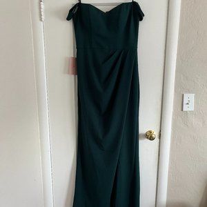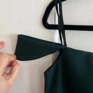 NWT never worn BHLDN emerald, Size 12, Off-The-Shoulder Green Crepe Dress.