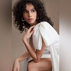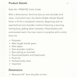 BHLDN Sachin & Babi Giselle One-Shoulder Bow Front-Slit Sheath Gown/ size 2