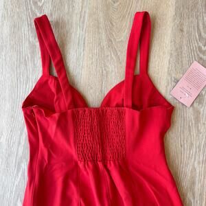 BHLDN Sage Sweetheart Stretch Crepe Midi Dress. This stylish midi dress is perfect for any special occasion! The sweetheart neckline and stretch crepe fabric create a flattering and comfortable fit. Details: • New with tags • Size: Small • Color: Red • Retail: $248 • Shoulder to Hem -- Approx. 46" **BUNDLE TO SAVE ON SHIPPING**