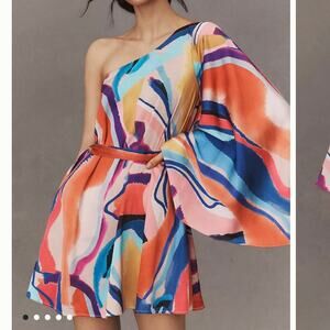BHLDN Stevie One-Shoulder Satin Mini Dress Size Small