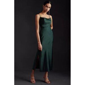 BHLDN Women's Cali Satin Cowl-Neck Midi Slip Dress Size 16
