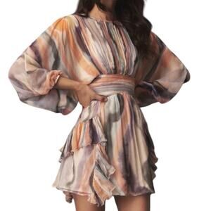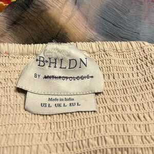 BHLDN by Anthropologie Dawn Mini Dress Women’s Large V-Neck Boho Ruffle Flowy NEW. New never worn. A-line mini dress w/ ruffle details and all over ruching. Lined. Back keyhole button closure. Materials + Measurements: Armpit - Armpit 19", Waist 15", Length 34". Viscose, polyester. Imported. Fast shipping.