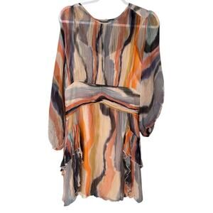 BHLDN by Anthropologie Dawn Mini Dress Womens Large V-Neck Boho Ruffle Flowy NEW