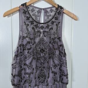 BHLDN x Anthropologie Maxi Gown Size 16 Lavender Beaded Embellished Blouson