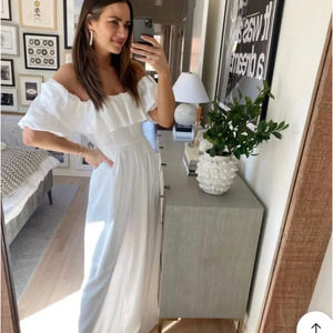 BHLDN x FAME & PARTNER Tessiah Ruffle Off Shoulder Jumpsuit White {3F49}
