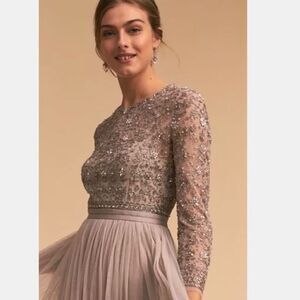 By Needle & Thread Fully beaded sleeves Back zip Nylon; polyester lining