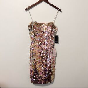 BHLDN x Aidan Mattox Starla Sequin Midi Dress Green Gold Size 6