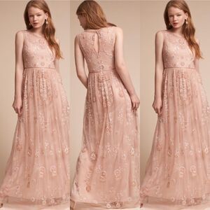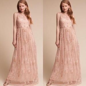 BHLDN +ADRIANNA PAPELL Exuding an antique-inspired elegance, this floor-skimming dress stuns with gorgeous illusion detailing at the décolletage and intricate beading on the bodice and skirt.