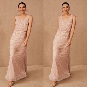 BHLDN This v-neck blouson maxi is fully embellished with shimmering beads sewn by hand in an eye-catching geo pattern.