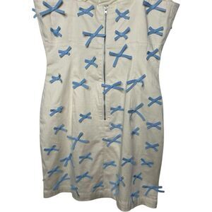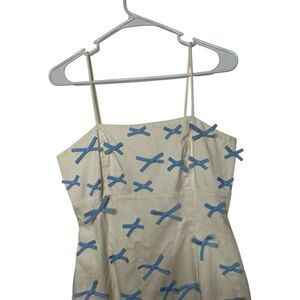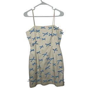 BHLDN Blue Bow Fitted Mini Dress Size 4 White Blue Cinderella Wedding Preppy
