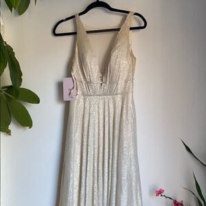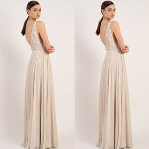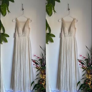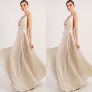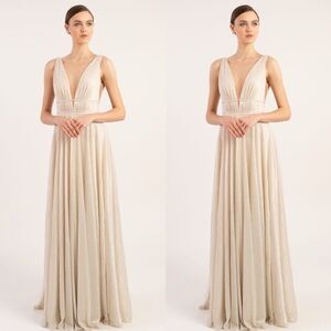 The long flowy circle skirt provides an easy fit. This formal dress is fully lined with a center back invisible zipper.