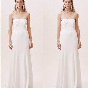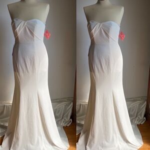 A soft sweetheart neckline and flattering seams down the skirt of this crepe dress combine for a truly timeless look. strapless ensemble. * Back zip * * Bust cups; boning * Polyester; polyester lining * Professionally clean * Fits large; take one size smaller than normal. * Built-in bust support; no bra required