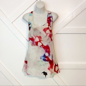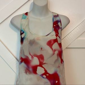 Multicolor abstract watercolor printed flowy sleeveless blouse/tank top. 100% silk.