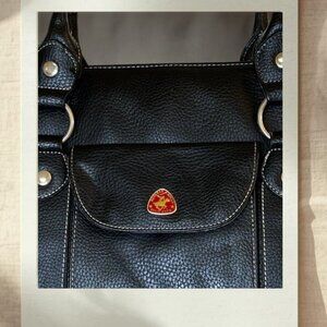 This sophisticated black tote bag by Beverly Hills Polo Club (BHPC) is the ultimate work, travel, or everyday carryall. It is made from durable leather with an attractive pebbled texture and bold white contrast stitching for a classic, structured look. The true standout feature is the incredibly organized, multi-compartment interior, which is perfect for keeping your essentials, documents, and even a laptop/tablet neatly separated and secure.
