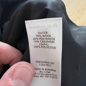 BHS Black Wool Blend Pea Coat- Women's US Size 12 EU 40. Black, wool/polyamide/cashmere blend, full-zip closure. In good condition.
